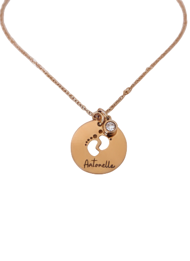 - Este collar de acero inoxidable representa un tributo elegante a la maternidad. Diseñado específicamente para madres, permite grabar infor
