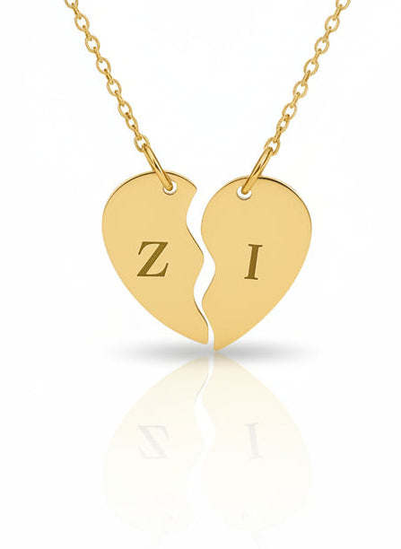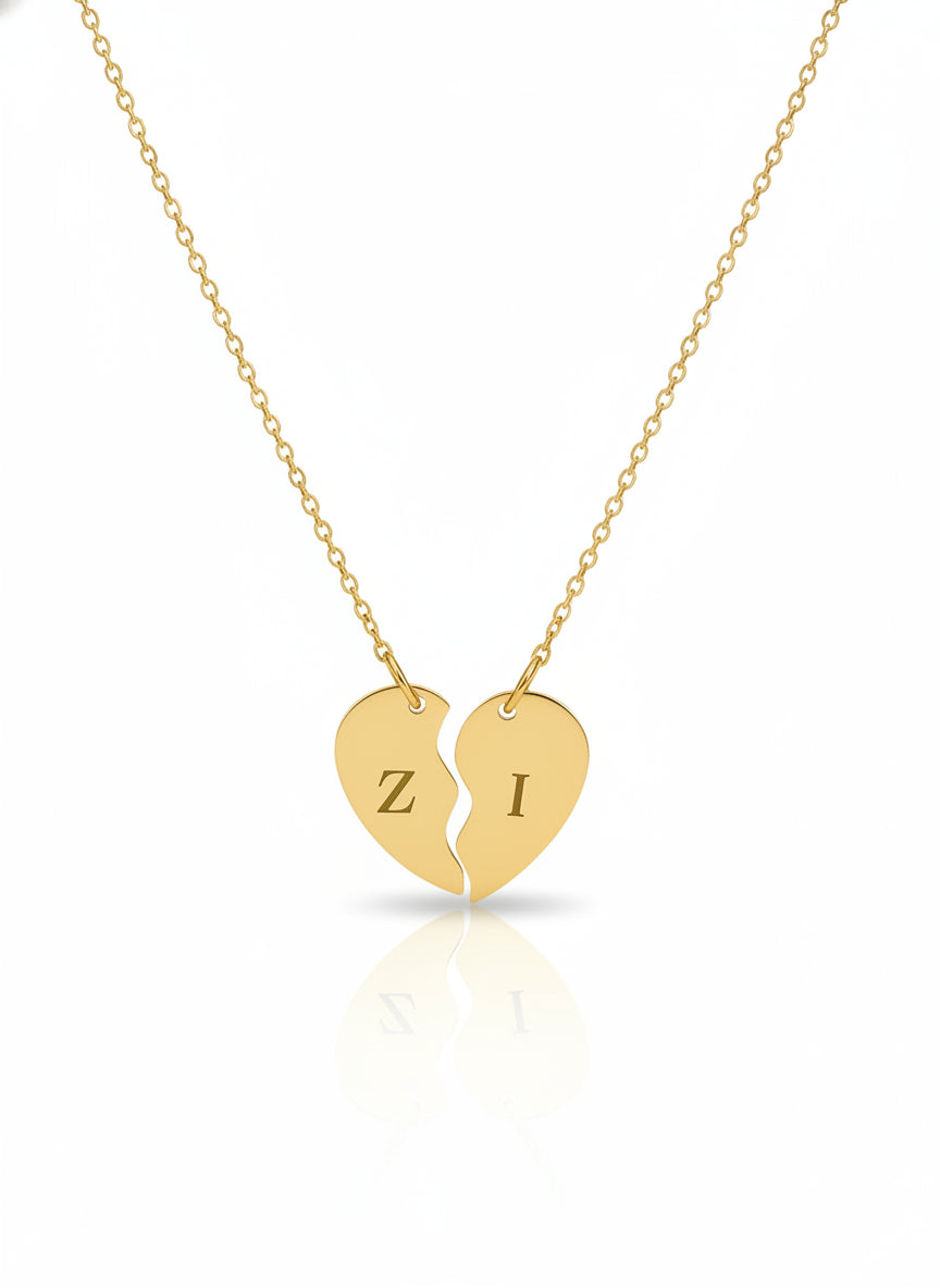 Dos cadenas unidas por un corazón partido a la mitad, símbolo perfecto de conexión y amor compartido. Cada mitad está elaborada en acero inoxidable resistente y duradero, diseñada para que tú y tu persona especial lleven una pieza del mismo corazón. Personalizables con grabado, estas cadenas ajustables de 16-18" se convierten en un regalo significativo que representa la unión de dos almas. Celebra tu vínculo con una joya que cuenta vuestra historia de amor.