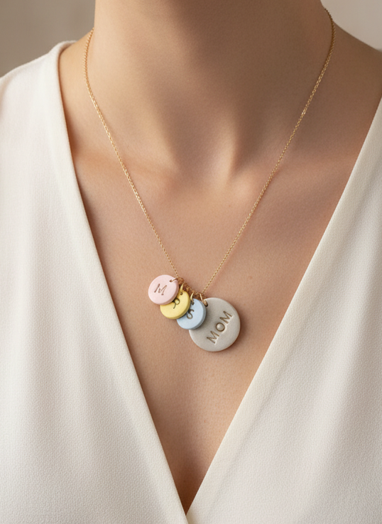 Cadena de acero inoxidable con dijes personalizados de polymer clay hechos a mano. Cada pieza es única y elaborada artesanalmente con atención al detalle. Personaliza tu collar eligiendo los colores exactos para las iniciales que desees. Perfecta para regalar o para ti misma, combina elegancia con un toque personal y creativo. Material duradero que mantiene su brillo y calidad en el tiempo.